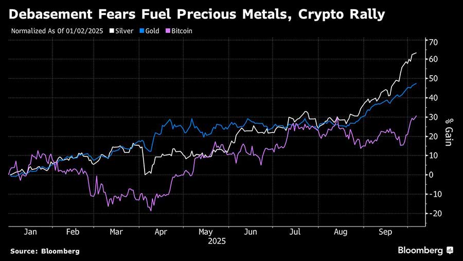 “Polanya yang familiar tentang pelemahan dolar AS terhadap aset cadangan alternatif di tengah disfungsi Washington” kembali terlihat, tulis analis JPMorgan Chase & Co., termasuk Meera Chandan, dalam catatan tanggal 3 Oktober.