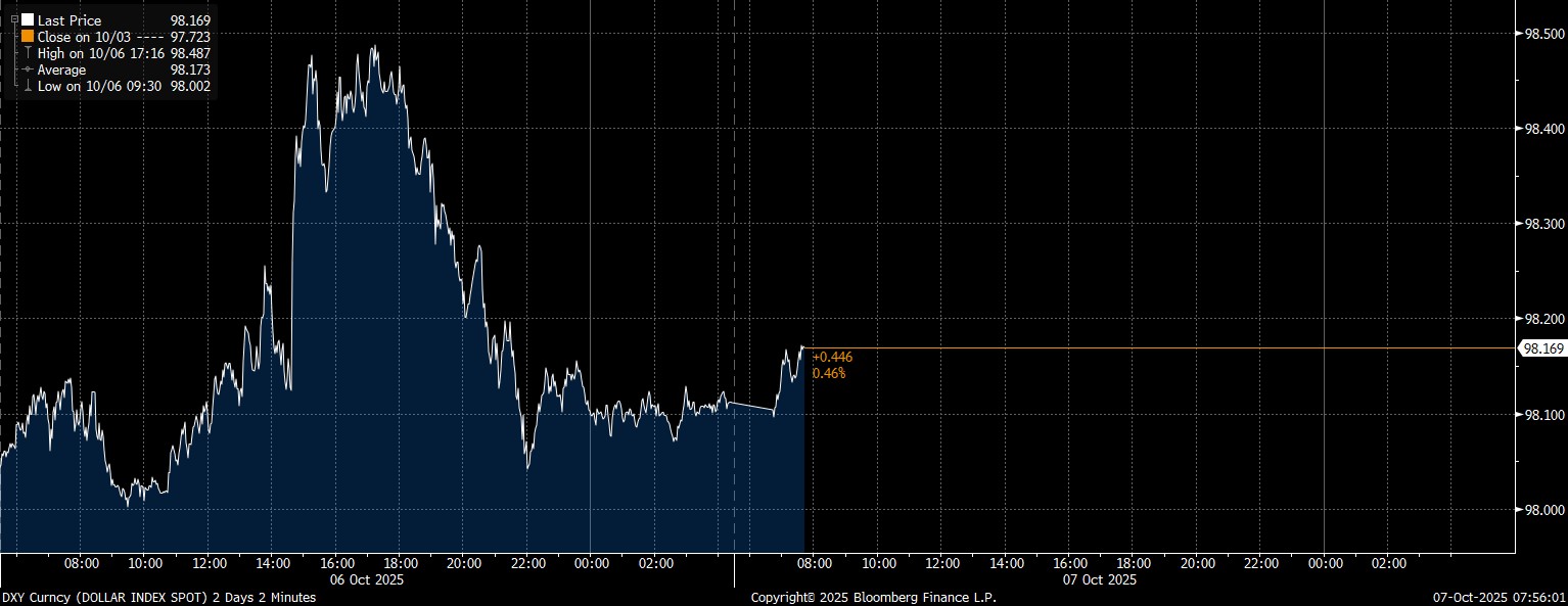 Pagi ini, Dollar Index masih menguat 0,6% menuju 98,169.