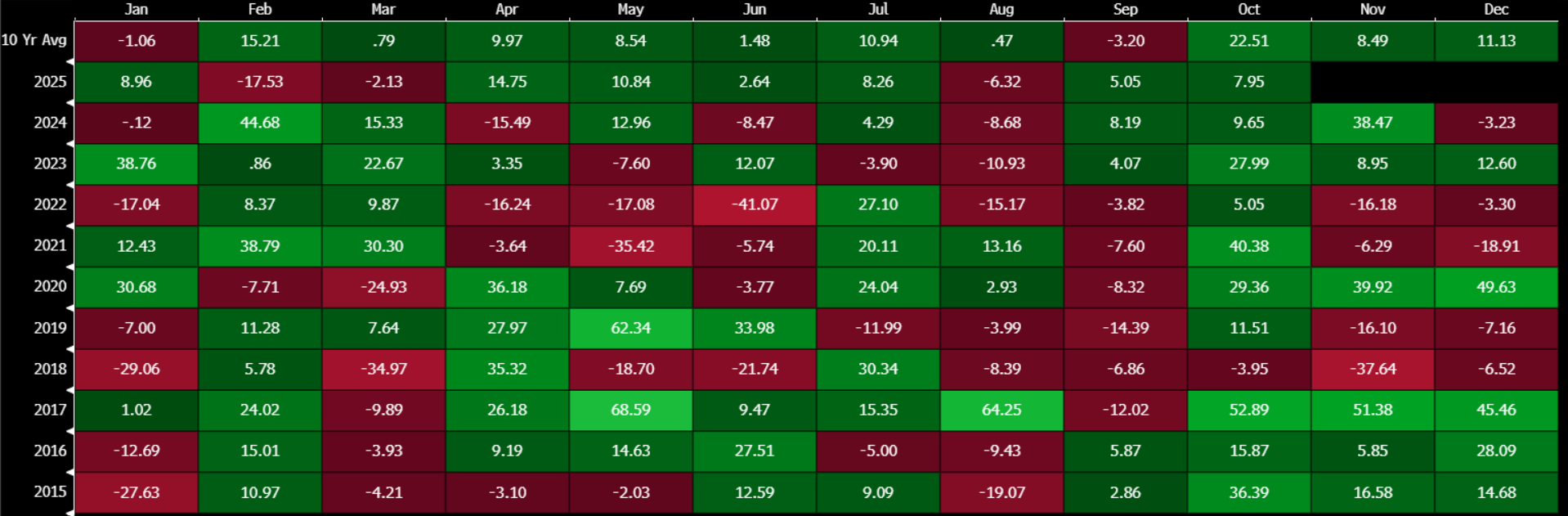 Bloomberg Technoz, Jakarta - Bitcoin memulai tujuh hari pertama perdagangan Oktober dengan laju yang bullish di zona hijau. Penguatan yang terjadi pada awal Oktober senada dengan data historis dalam 10 tahun. Jika dirata–ratakan Bitcoin tercatat menguat 22,51% selama perdagangan bulan Oktober, berdasarkan data Bloomberg.