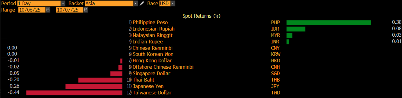 Di sisi berseberangan, dolar Taiwan melemah terdalam mencapai 0,44%, yen Jepang minus 0,26%, baht Thailand 0,2%, dolar Singapore 0,05%, yuan offshore 0,02%, dan dolar Hong Kong yang terdepresiasi 0,01%.