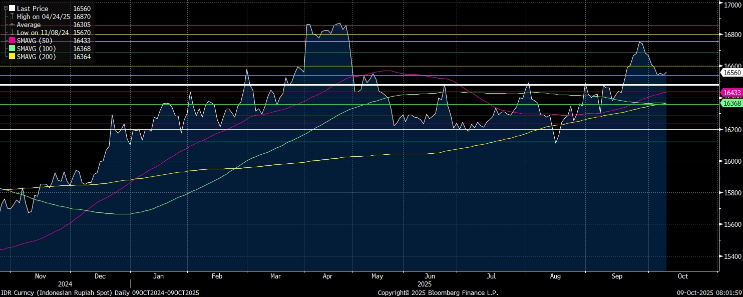 Secara teknikal rupiah berpotensi menuju Rp16.540-Rp16.500/US$ yang makin mendekati MA-50.