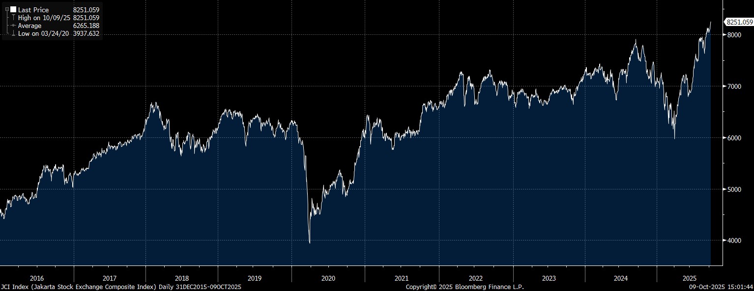 Sementara pada periode 2018-2025, emas mencatat kenaikan fantastis mencapai 210% dengan beberapa kali memecahkan rekor tertinggi sepanjang masa (All Time High/ATH) yaitu saat genap naik empat hari beruntun hingga kemarin, dan mengantar emas memperbarui rekor di US$ 4.042/ troy ounce.