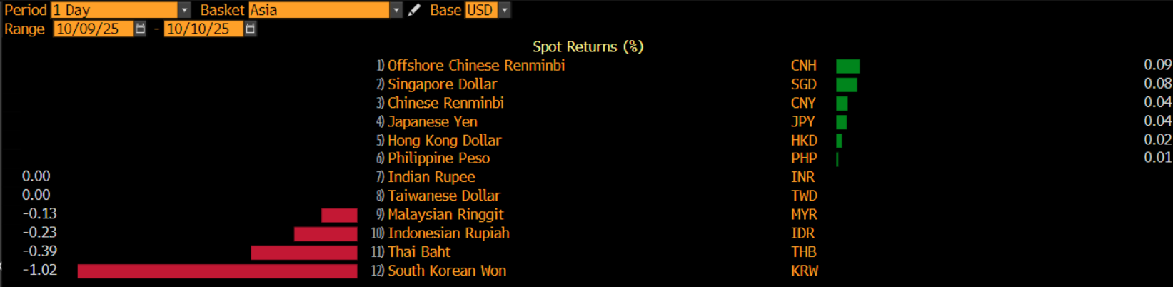 Beberapa mata uang utama Asia juga melemah. Won Korea Selatan jadi yang terlemah dengan depresiasi lebih dari 1%.