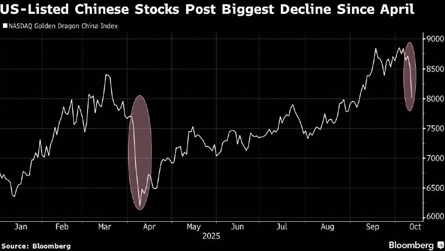 Indeks saham China yang terdaftar di AS anjlok lebih dari 6% pada Jumat, kerugian terbesar sejak perang dagang memanas pada April. Saham-saham AS juga anjlok, di mana Nvidia Corp yang terjebak dalam negosiasi kontrol ekspor antara kedua negara, merosot hampir 5%. Mata uang pasar negara berkembang melemah.