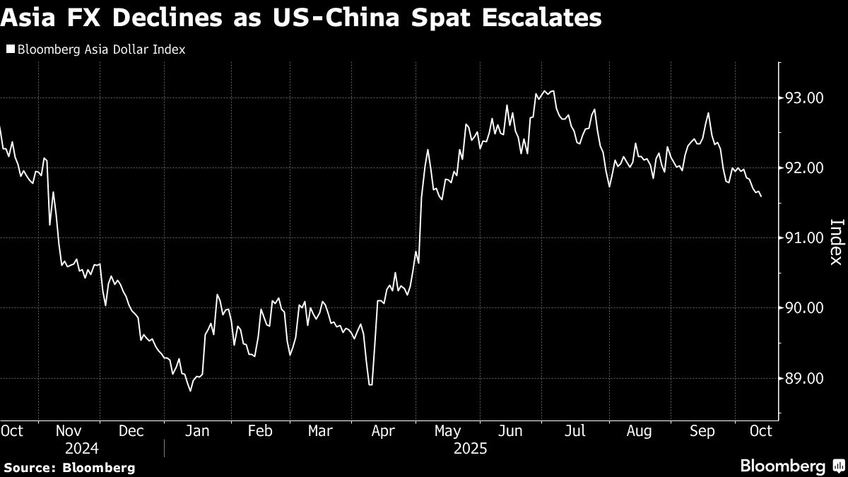 “Pasar Asia sedang berada dalam mode risk-off setelah ancaman tarif 100% dari Trump kembali memunculkan kekhawatiran akan eskalasi baru dalam ketegangan dagang AS–China,” ujar Lloyd Chan, analis strategi di MUFG Bank Ltd.
