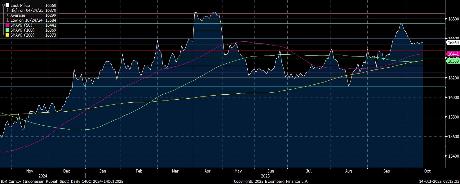 Secara teknikal nilai rupiah ada asa menguat hari ini. Adapun rupiah berpotensi menguat ke resistance terdekat pada level Rp16.540/US$, resistance potensial selanjutnya menuju Rp16.500/US$ usai break trendline sebelumnya.