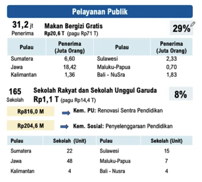 Realisasi program Sekolah Rakyat dan Sekolah Unggul Garuda sudah mencakup 165 sekolah. Sumber: Kemenkeu (aji) TAG MBGMakan Bergizi GratisSekolah rakyatSekolah GarudaAPBNAPBN 2025Kemenkeu No more pages ← Prev article