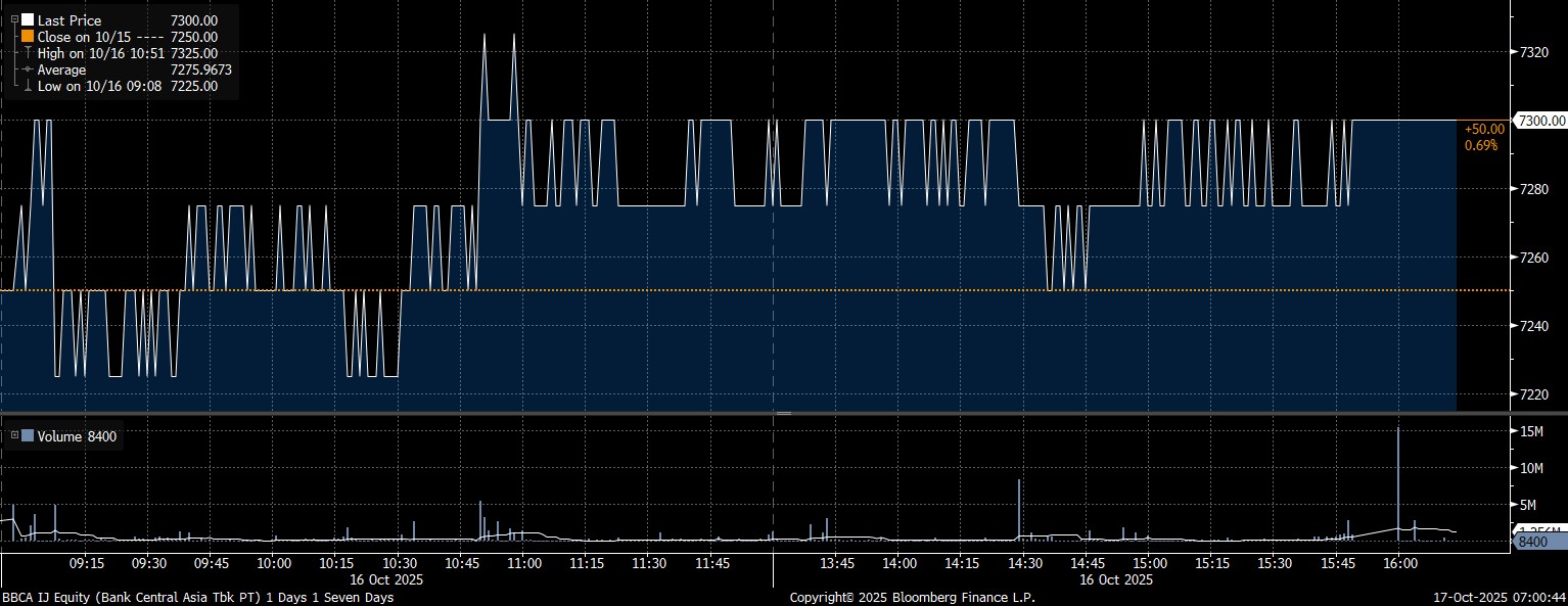 Adapun investor asing net sell yang masif pada saham PT Bank Central Asia Tbk (BBCA) mencapai Rp248,28 miliar. Biarpun tergencet manuver jual, saham BBCA tetap berhasil menguat 0,69% di posisi Rp7.300/saham.