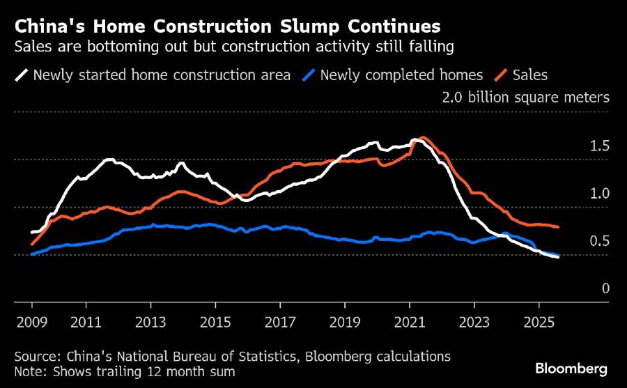 Rumah baru senilai 253 miliar yuan (US$36 miliar) dijual oleh pengembang terbesar pada September, kurang dari seperempat total penjualan pada bulan yang sama sebelum krisis dimulai tahun 2020.