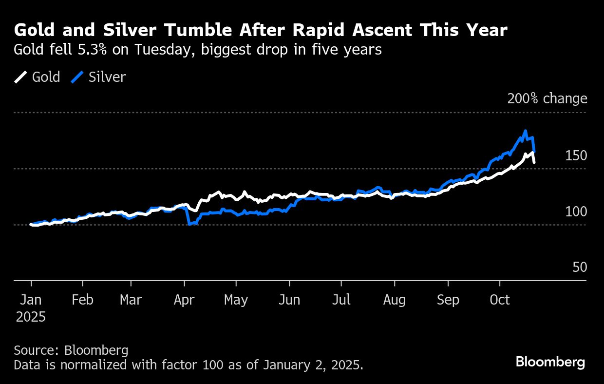 Bloomberg, Harga emas bergerak stabil dan perak sedikit melemah pada awal perdagangan di Asia, setelah keduanya jatuh tajam dari level tertinggi sepanjang masa pada Selasa (21/10). Sementara itu, reli di bursa saham AS mulai kehilangan tenaga di tengah tanda-tanda kejenuhan pembeli.