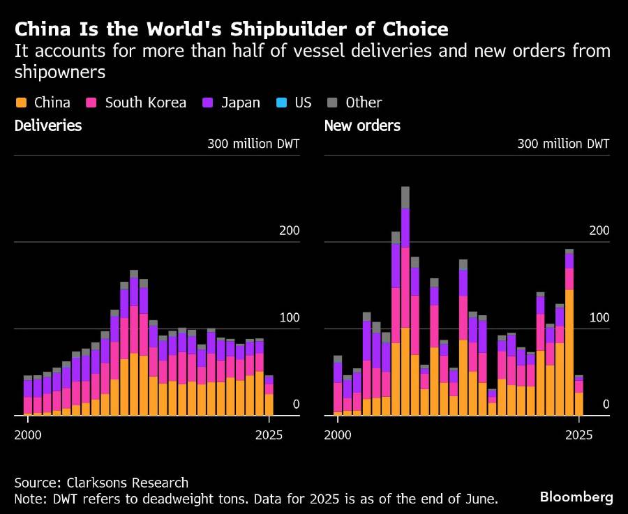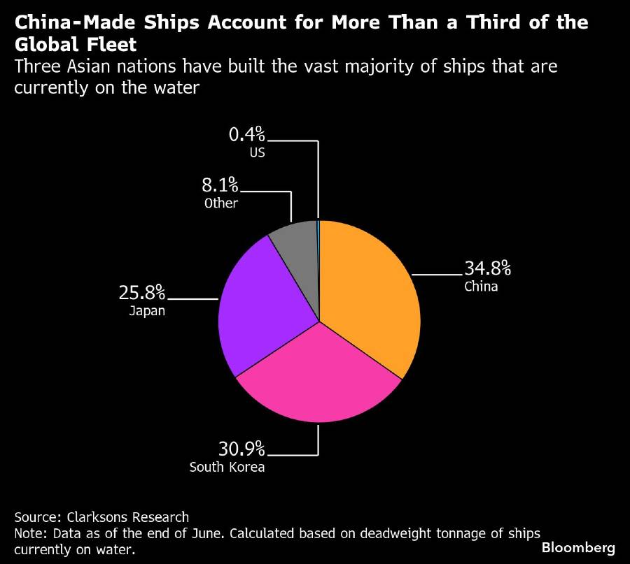 China merupakan pemain kecil dalam industri pembuat kapal seperempat abad lalu. Pemain besarnya ialah Jepang dan Korea Selatan. Namun, China kini menjadi raksasa. Menurut Clarksons Research Services Ltd, berdasarkan tonase, lebih dari sepertiga kapal yang saat ini beroperasi dibangun di China, dibandingkan kurang dari 1% dari galangan kapal AS.