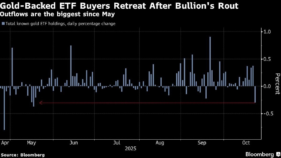 Penurunan harga emas selama seminggu bertepatan dengan arus keluar besar dari ETF yang didukung emas, yang pada Rabu mencatat penurunan harian terbesar dalam kepemilikan mereka dalam lima bulan terakhir, menurut data yang dikumpulkan oleh Bloomberg.
