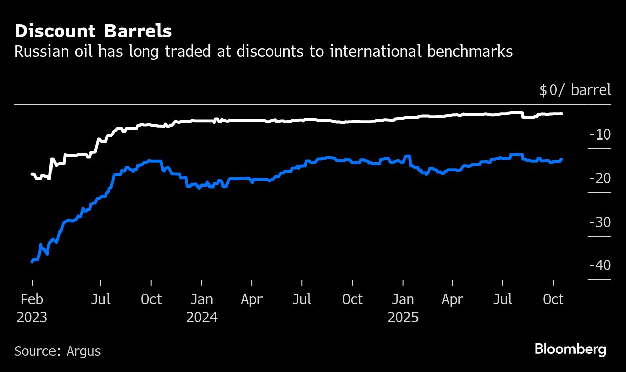 Di pelabuhan laut Baltik Primorsk, harga minyak unggulan negara itu sekitar US$12 hingga US$13 per barel di bawah patokan internasional Dated Brent. bulan ini, menurut data dari Argus, sebuah lembaga pelaporan harga.