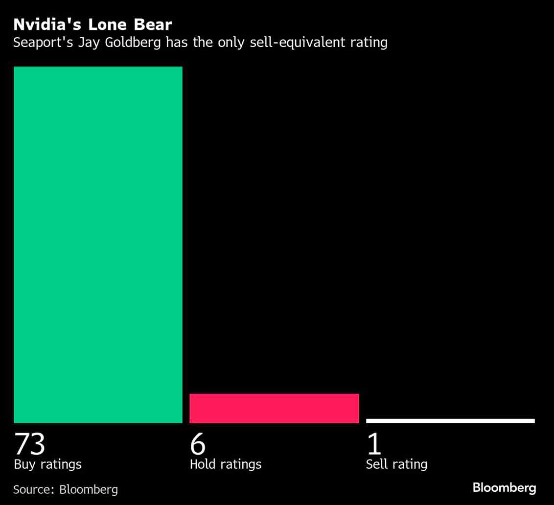 Ada 80 analis yang menganalisis perusahaan pembuat chip tersebut, 73 di antaranya memberikan peringkat beli untuk sahamnya. Enam memberi peringkat tahan. Dan kemudian ada Goldberg.