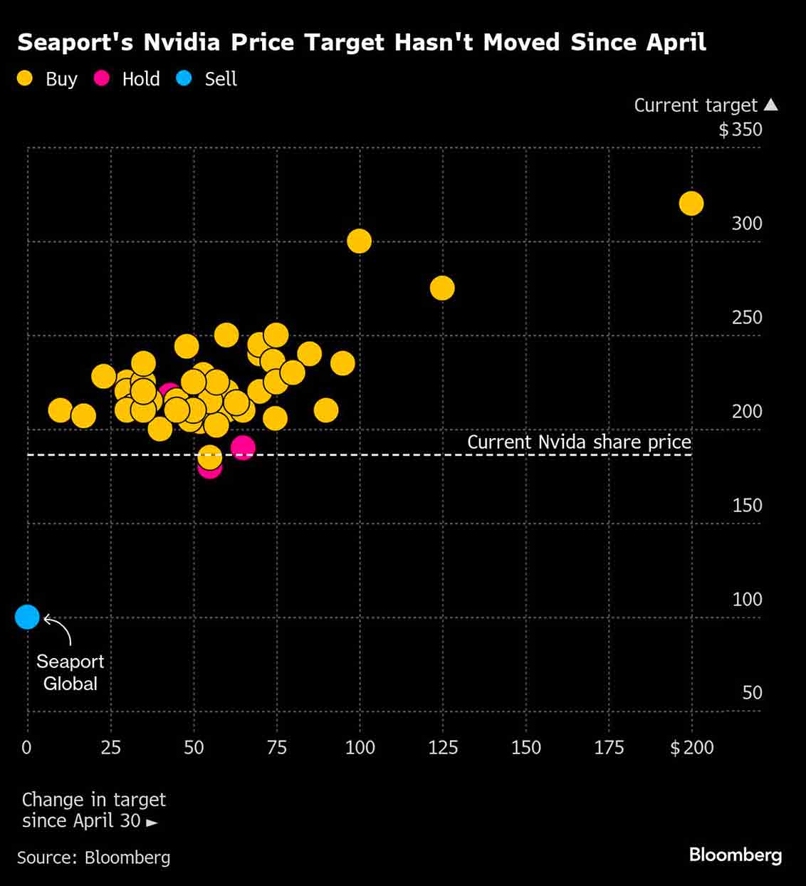 Goldberg mencatatkan 12 perusahaan, dan Nvidia adalah satu-satunya perusahaan yang dia rekomendasikan untuk dijual. Dia beri rekomendasi pembelian untuk Apple Inc., Netgear Inc., dan produsen chip Broadcom Inc. dan Arm Holdings Plc., yang keduanya sangat terpapar pada perdagangan AI.