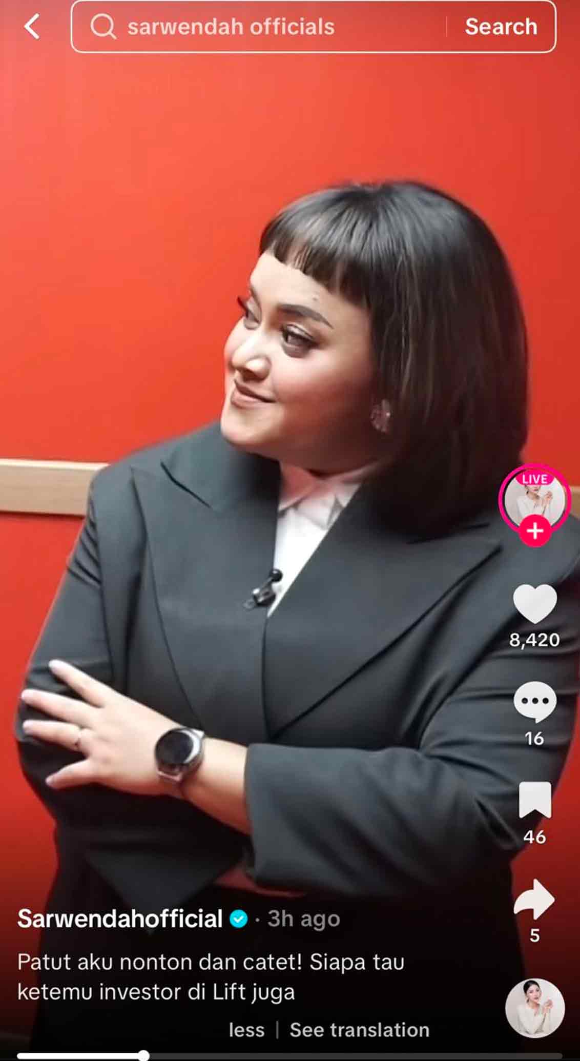 Tantangan ini tidak hanya menguji kemampuan para peserta dalam mempresentasikan ide bisnis mereka di depan para investor, tetapi juga berhasil menginspirasi banyak penonton, termasuk Sarwendah. Ia ikut terpacu melihat bagaimana para peserta berani menyampaikan visi dan strategi bisnis mereka dengan percaya diri dalam waktu yang singkat. Dalam unggahan di media sosialnya, ia menulis, “Patut aku nonton dan catet! Siapa tahu ketemu investor di lift juga”. Ungkapan ringan namun bermakna ini menunjukkan antusiasmenya yang juga sebagai seorang pebisnis. Sarwendah terlihat kagum dengan semangat para peserta dalam menaklukkan tantangan dan menjadikan pengalaman di Shopee Jagoan UMKM Naik Kelas episode 5 sebagai motivasi untuk terus berkembang.