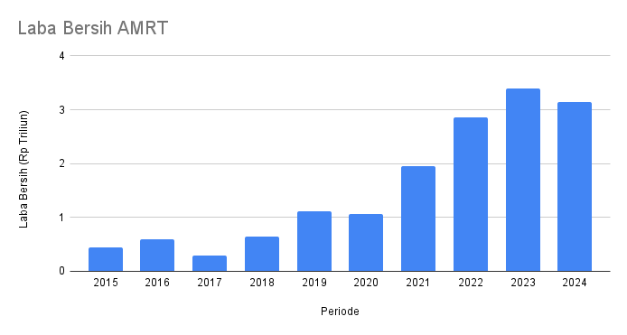 Sepanjang 2024, laba bersih AMRT tercatat Rp 3,14 triliun. Turun 7.35% dibandingkan tahun sebelumnya.