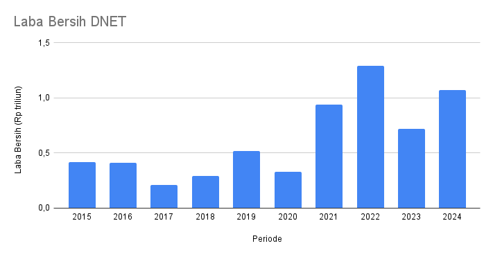 Pada 2024, DNET meraup laba bersih Rp 1,07 triliun. Meroket 49% dibandingkan 2023.