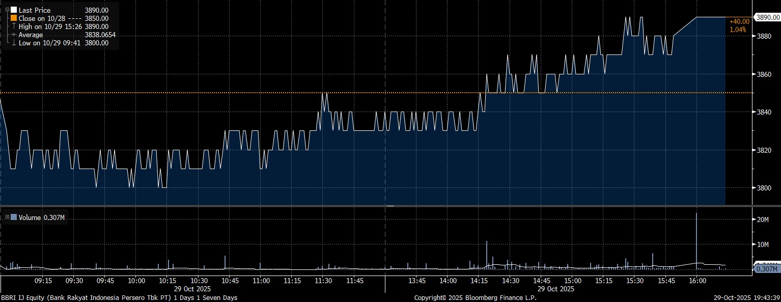 Sementara itu, investor asing net sell yang masif pada saham PT Bank Rakyat Indonesia Tbk (BBRI) mencapai Rp174,01 miliar. Berseberangan jauh dengan penjualan yang masif, saham BBRI tetap solid menguat 1,04% di posisi Rp3.890/saham.