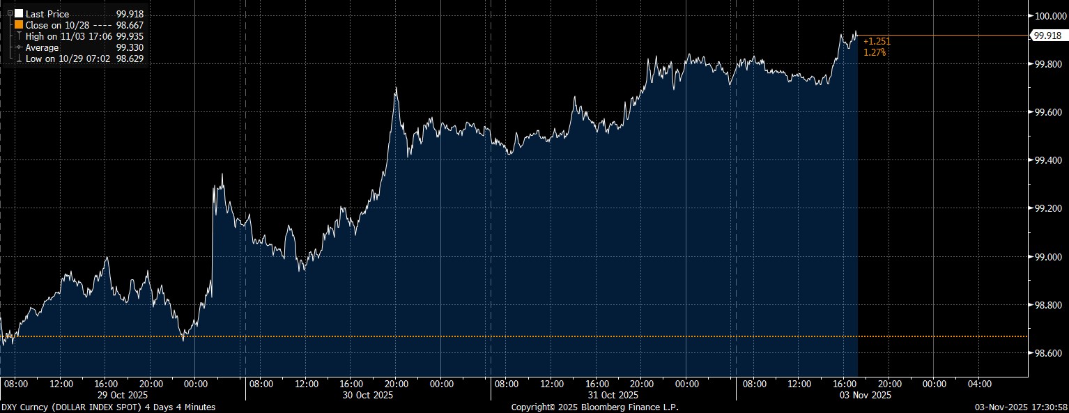 DXY berhasil melanjutkan tren bullish dengan penguatan empat hari berturut–turut. Dalam 6 hari perdagangan tersebut, indeks ini kembali menguat 1,26% secara point–to–point. Selama sebulan ke belakang, DXY berhasil melesat 1,84%.