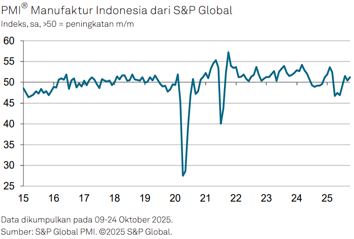 Pencapaian tersebut membuat tiga bulan beruntun manufaktur Indonesia berada di level ekspansi, yang turut mengonfirmasi kenaikan permintaan. Permintaan baru (new orders) naik tiga bulan berturut–turut. Terlebih lagi, pertumbuhan permintaan baru pada Oktober menjadi yang tertinggi sejak Maret atau dalam tujuh bulan.