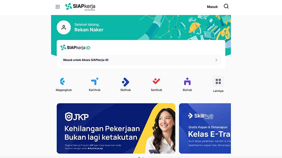 Buka situs resmi Kemnaker di https://siapkerja.kemnaker.go.id/.