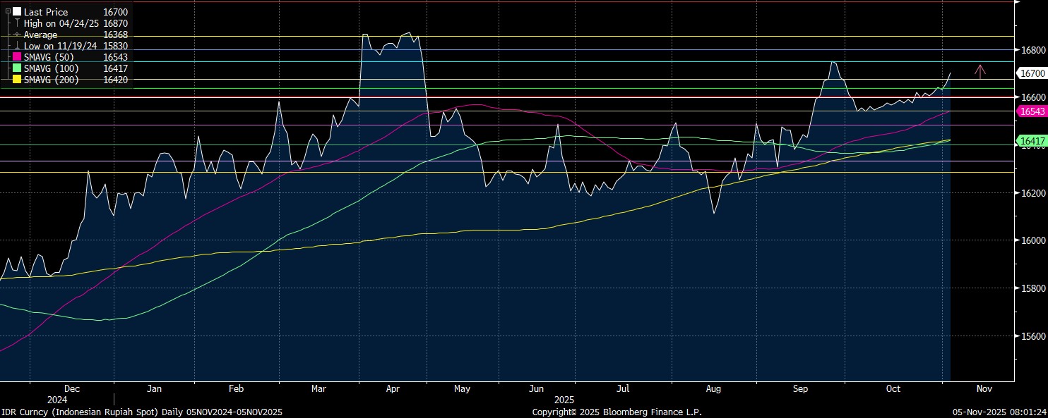 Pada saat yang sama, pasar juga menunggu rilis data pertumbuhan ekonomi Indonesia per Kuartal III-2025.