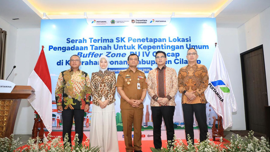 Bloomberg Technoz, Jakarta - Pertamina menegaskan bahwa setiap operasi kilangnya dijalankan dengan aman dan andal, salah satunya melalui penerapan zona pengaman (buffer zone) untuk melindungi masyarakat dan lingkungan sekitar. Upaya ini diwujudkan melalui serah terima SK Penetapan Lokasi (Penlok) Pengadaan Tanah untuk Kepentingan Umum Buffer Zone PT Kilang Pertamina Internasional (KPI) Unit Cilacap, yang berlokasi di Kelurahan Donan, Cilacap Tengah.