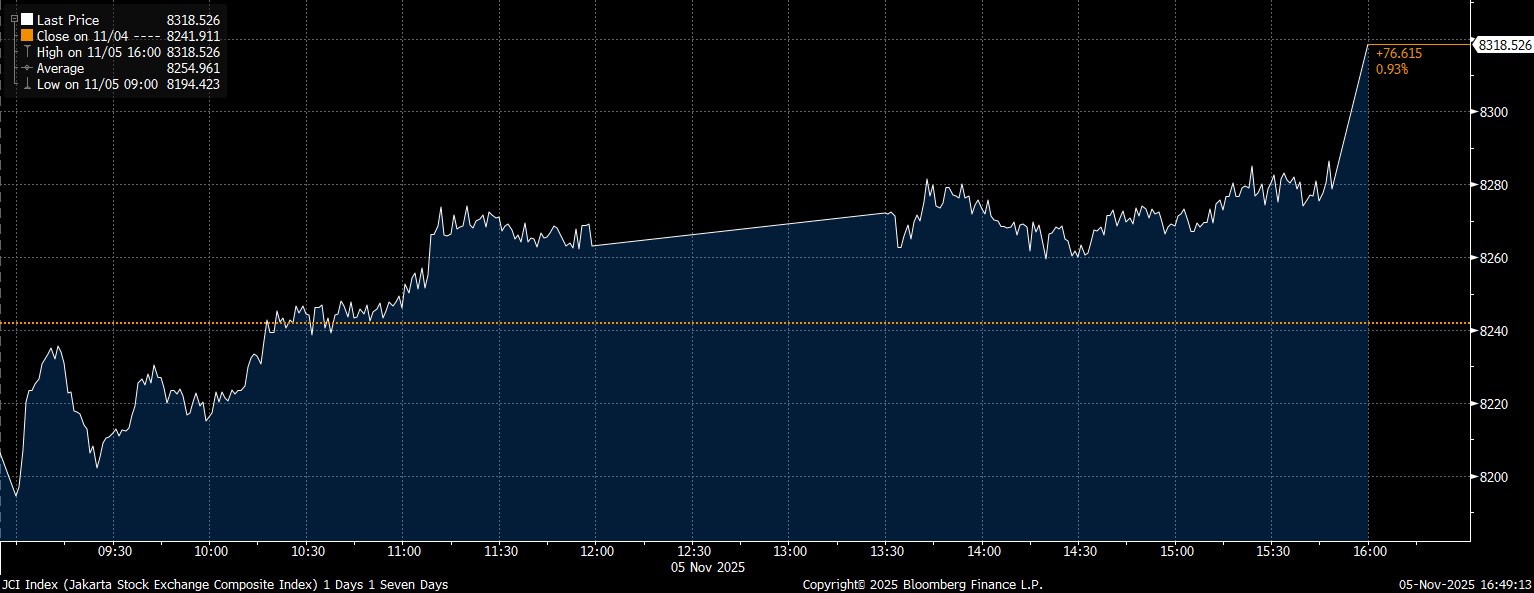 Bloomberg Technoz, Jakarta - Indeks Harga Saham Gabungan (IHSG) berhasil mencetak rekor tertinggi sepanjang sejarah All Time High (ATH). Berdasarkan data Bloomberg, Rabu (5/11/2025), IHSG ditutup menguat 0,93% di level 8.318,52 yang merupakan level harga tertinggi secara penutupan.