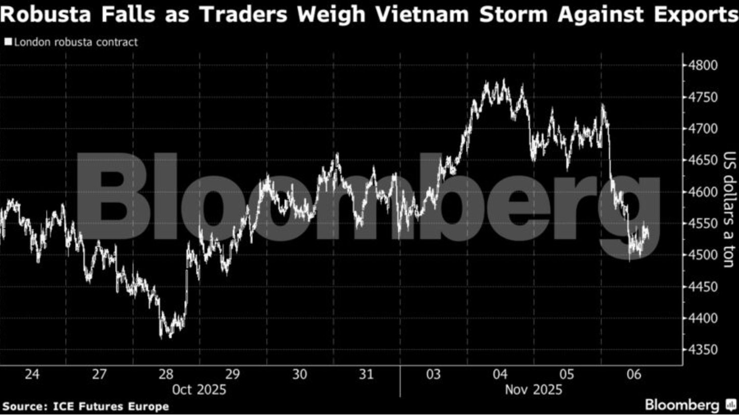 Panen kopi Vietnam untuk musim 2025–2026 telah dimulai bulan lalu, dan curah hujan tinggi di Dataran Tinggi Tengah kemungkinan akan merusak tanaman, mengganggu proses pemetikan, serta memengaruhi kualitas biji. Namun, kondisi ini diperkirakan tidak akan mengubah pasokan secara signifikan karena harga yang lebih tinggi akan mendorong petani untuk tetap mengumpulkan buah kopi yang jatuh, menurut Greg Oddo, ahli strategi cuaca di Sucafina.