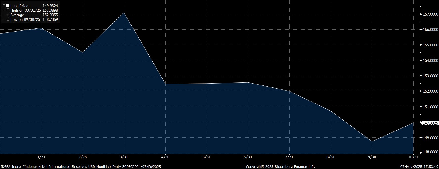Pada Jumat, BI mengumumkan Cadangan Devisa Indonesia per Oktober mencapai US$ 149,9 miliar. Naik US$ 1,2 miliar dibanding bulan sebelumnya.