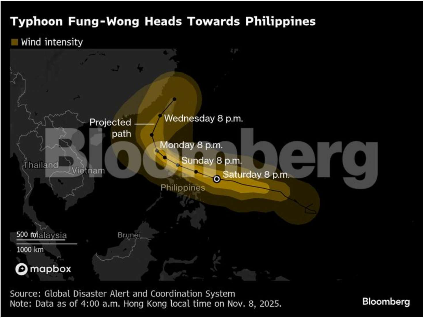 Dalam buletin terbarunya, Badan Meteorologi Pagasa mengatakan "kondisi yang mengancam nyawa terus berlanjut di Provinsi Camarines Norte." Fung-Wong akan mendarat pada Minggu malam atau Senin dini hari "pada atau mendekati intensitas puncaknya sepanjang masa," ujarnya.