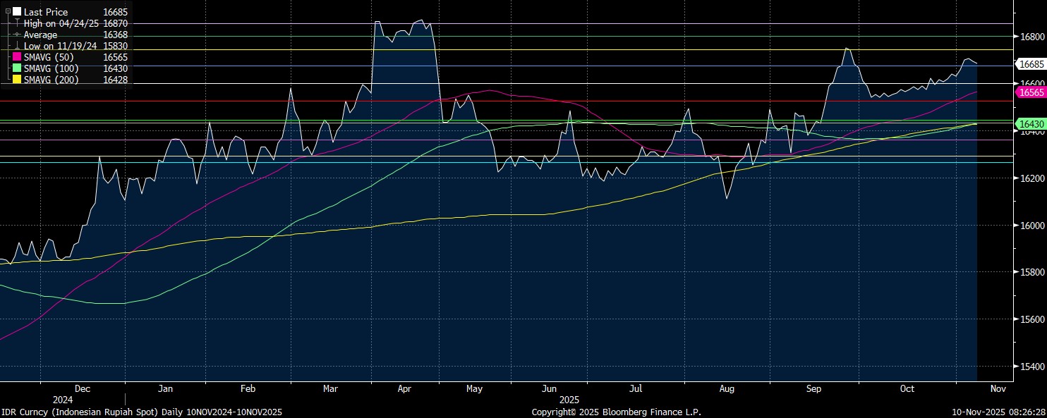 Bloomberg Technoz, Jakarta - Nilai tukar rupiah menghadapi dolar Amerika Serikat (AS) pada hari pertama perdagangan pekan ini, Senin (10/11/2025), berpeluang melanjutkan penguatan yang sudah dimulai Jumat lalu.