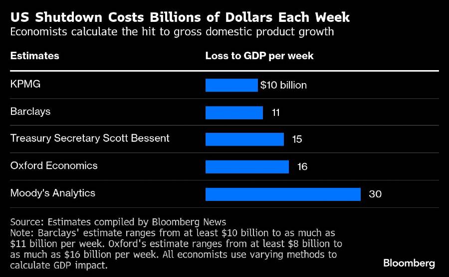Menurut Kantor Anggaran Kongres (CBO), bergantung pada lamanya, shutdown bisa menurunkan pertumbuhan ekonomi kuartal IV hingga 2 poin persentase. Jika kebuntuan ini berlanjut hingga pekan Thanksgiving, sekitar US$14 miliar tidak akan bisa dipulihkan sama sekali.