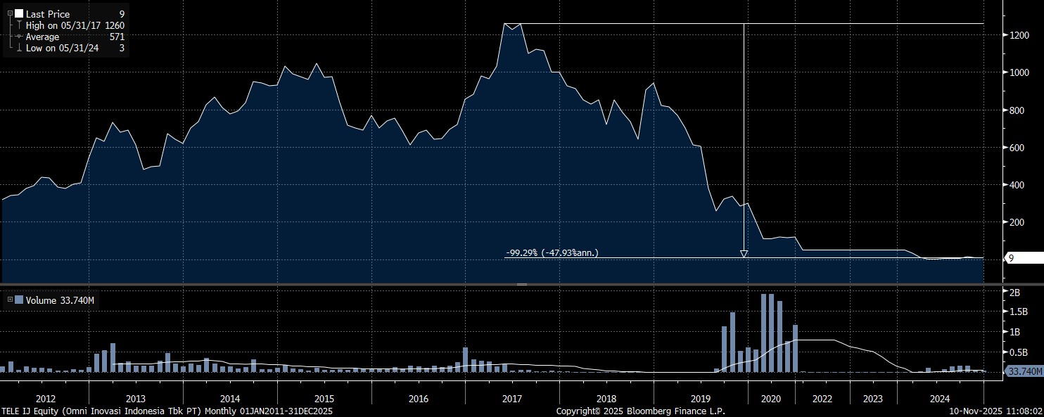 Saham TELE dari Rp1.260 Jadi Rp9, Investor Rugi 99%