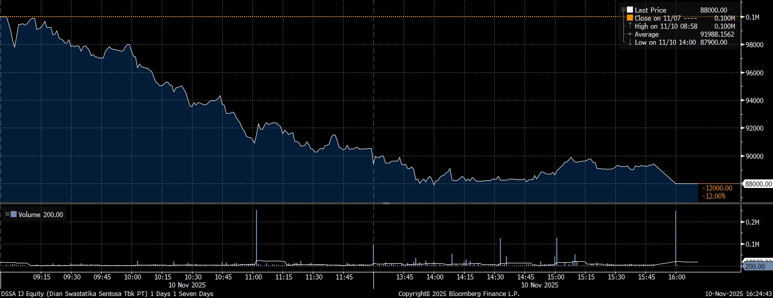 - Dian Swastatika Sentosa (DSSA) mengurangi 44,18 poin