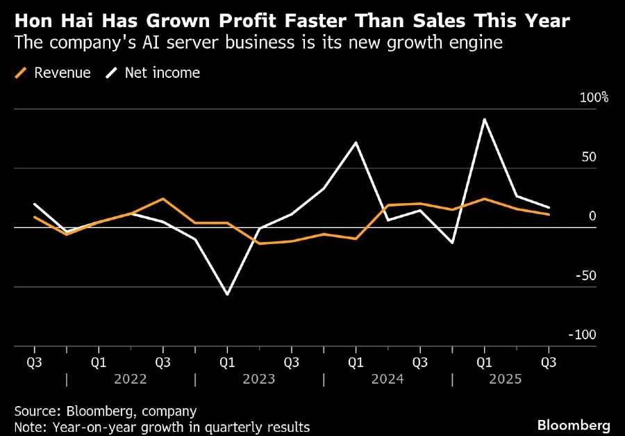 Bloomberg, Hon Hai Precision Industry Co. memberikan proyeksi optimis untuk tahun depan, dengan pengembangan kecerdasan buatan (artificial intelligence/AI) sebagai pendorong pertumbuhan terpenting perusahaan.