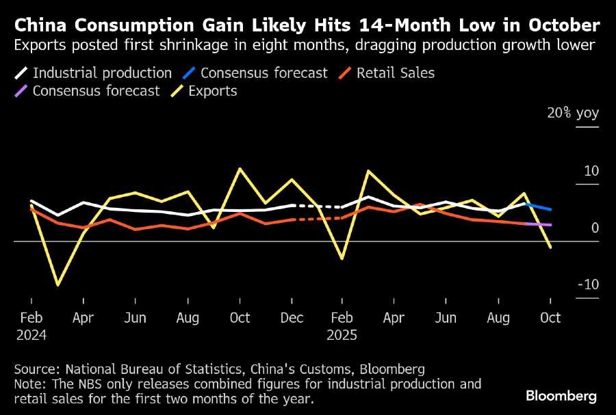 Tanda-tanda perlambatan konsumsi sudah terlihat ketika data perjalanan dan pengeluaran yang lesu dilaporkan selama libur Hari Nasional sepekan pada awal bulan.