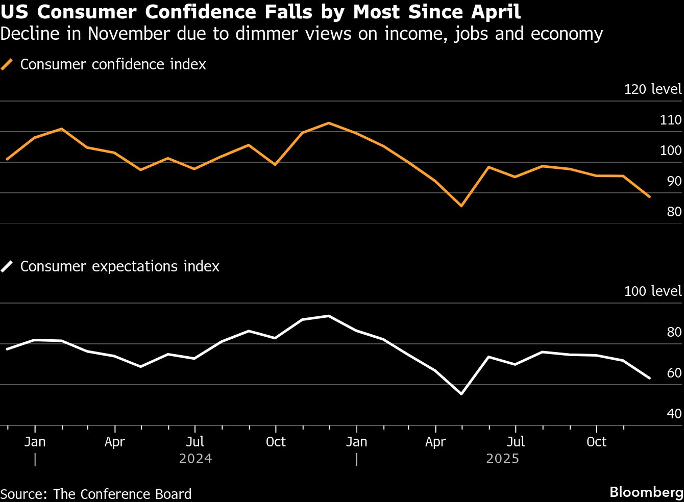 Kemudian The Conference Board mengumumkan indeks keyakinan konsumen di Negeri Adikuasa pada November berada di 88,7. Turun 6,8 poin dibandingkan bulan sebelumnya dan menjadi yang terendah sejak April atau tujuh bulan terakhir.