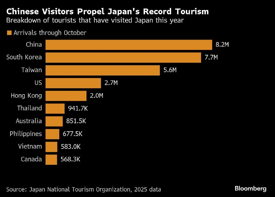 China Trading Desk memperkirakan Jepang berisiko kehilangan pengeluaran wisatawan hingga US$1,2 miliar antara sekarang dan akhir 2025 akibat pembatalan perjalanan oleh turis China. Jika pembatalan terus berlanjut dengan laju ini hingga 2026, kerugian kumulatifnya bisa mencapai hingga US$9 miliar.