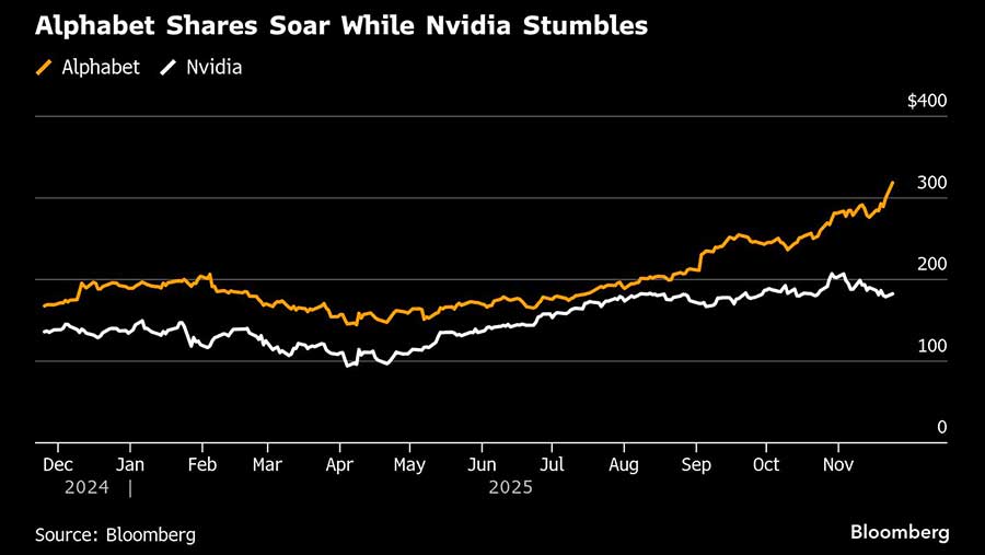 Saham-saham Asia yang terkait dengan Alphabet melonjak tajam pada perdagangan awal Selasa di Asia. Di Korea Selatan, saham IsuPetasys Co., yang memasok papan multilayer ke Alphabet, melonjak 18% ke rekor intraday baru. Di Taiwan, saham MediaTek Inc. naik hampir 5%.