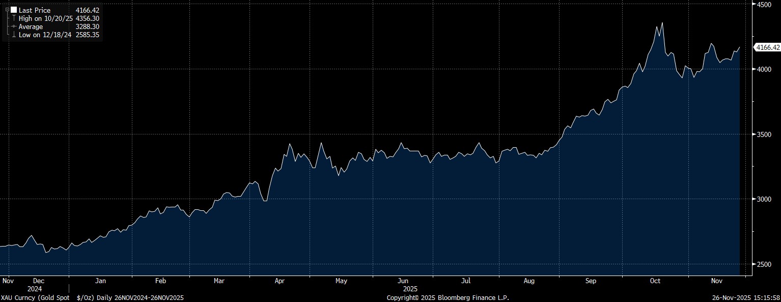 Berikut pergerakan saham emas pada perdagangan hari ini, Rabu (26/11/2025):