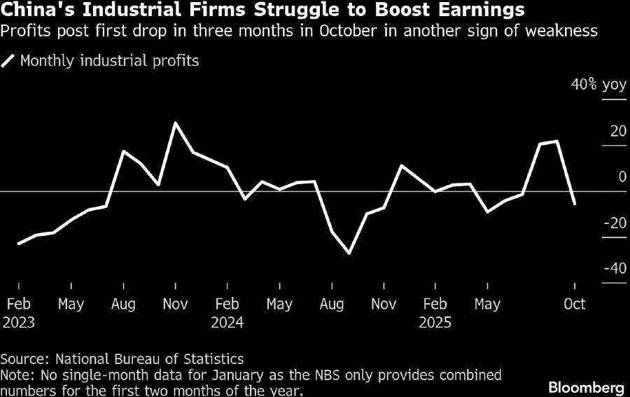 "Penurunan laba industri China pada Oktober mengonfirmasi terjadi pelemahan ekonomi menjelang akhir tahun. Namun, berita utama itu mungkin melebih-lebihkan perlambatan tersebut, mengingat kenaikan yang kuat pada Agustus dan September sebagian mencerminkan basis yang rendah."