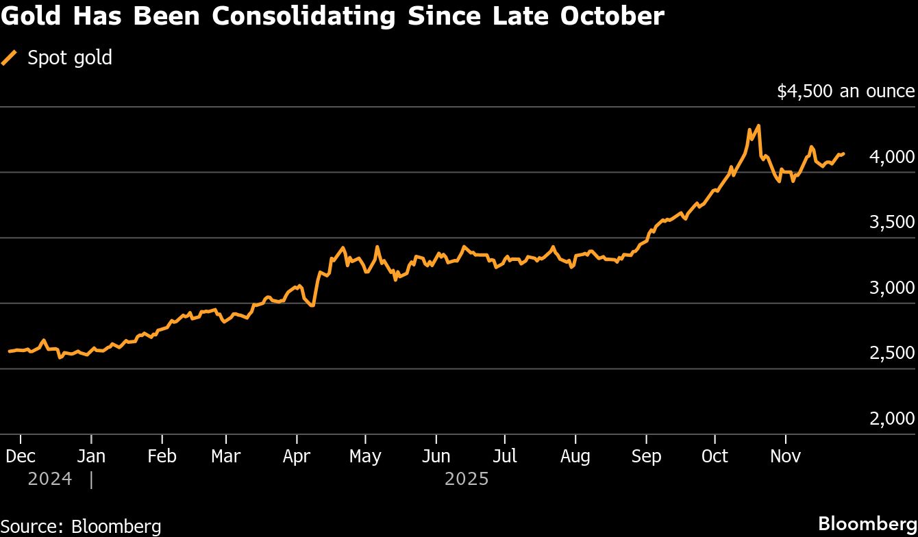 Sejak akhir Oktober, harga emas dunia cenderung mengalami konsolidasi. Namun sepanjang 2025 (year-to-date), harga masih melambung 58,6%.