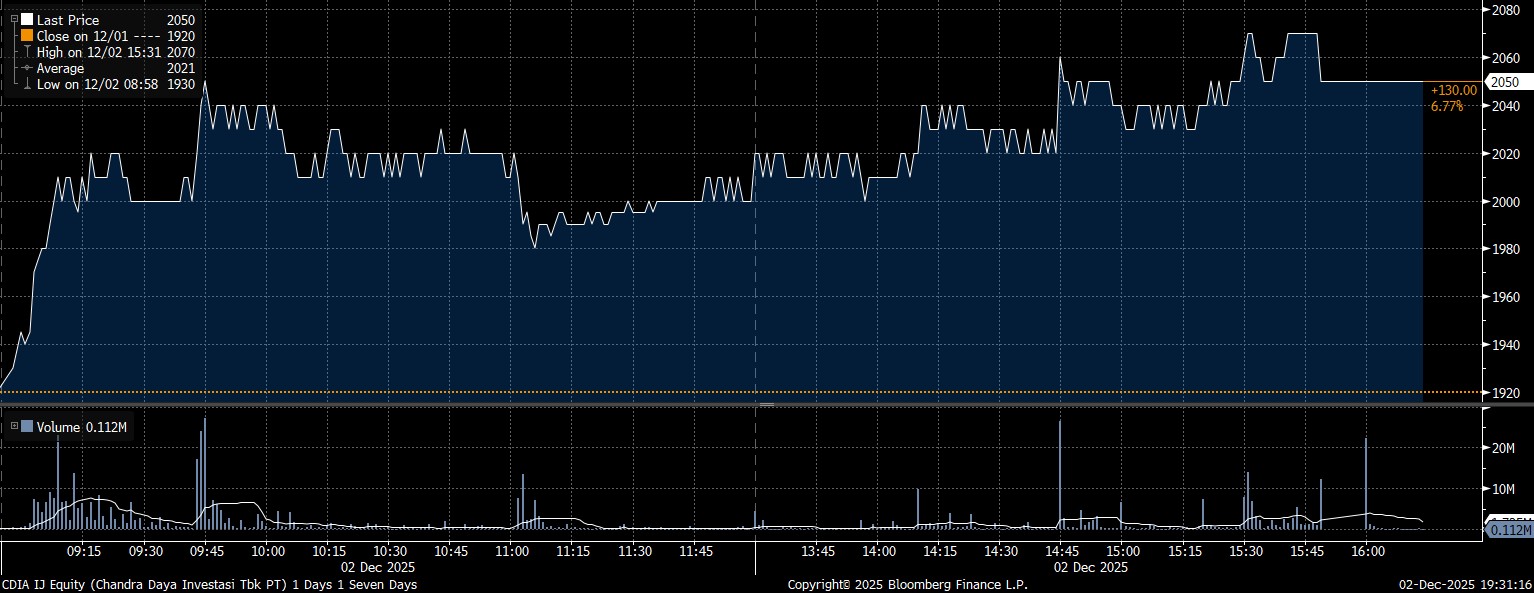 - PT Chandra Daya Investasi Tbk (CDIA) Rp239,01 miliar