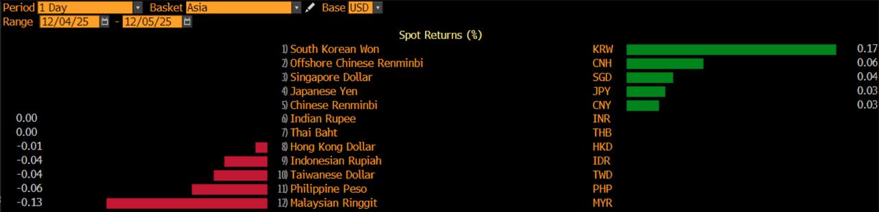 Di pasar Asia, ringgit Malaysia menjadi yang terlemah dengan depresiasi sebesar 0,13%. Disusul peso Filipina 0,06% dan dolar Taiwan 0,04%.