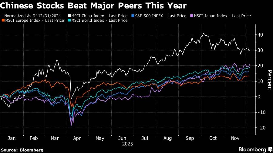 Investor asing khusus jangka panjang membeli sekitar US$10 miliar saham di daratan China dan Hong Kong hingga November tahun ini, menurut data dari Morgan Stanley, pembalikan dari arus keluar sebesar US$17 miliar tahun 2024. Arus masuk ini sepenuhnya didorong oleh investor pasif, yang melacak indeks, sementara manajer investasi aktif menarik sekitar US$15 miliar.