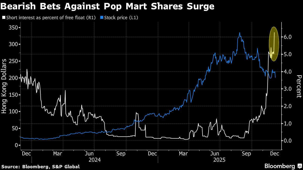 Saham pembuat Labubu itu mengalami gejolak dalam beberapa bulan terakhir, karena meningkatnya kekhawatiran bahwa perusahaan kekurangan keragaman produk dan pendorong pendapatan baru. Para trader terus meningkatkan taruhan bearish, mendorong short interest saham tersebut menjadi 6,3% dari total free float per Kamis, menurut data S&P Global. Itu adalah level tertinggi sejak Agustus 2023.