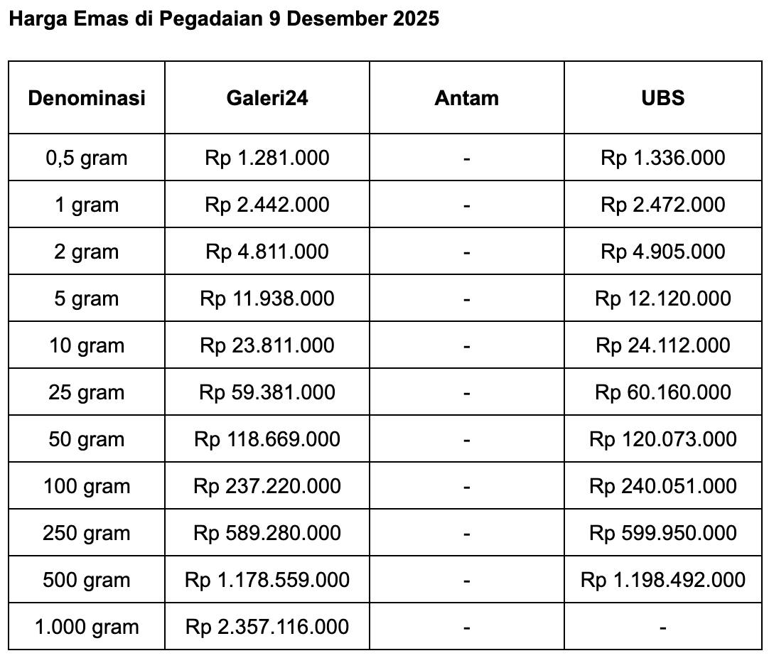Pegadaian adalah salah satu anak usaha PT Bank Rakyat Indonesia (Persero) Tbk (BBRI). Berikut perkembangan harga emas di Pegadaian selengkapnya, seperti dilansir situs Sahabat Pegadaian: