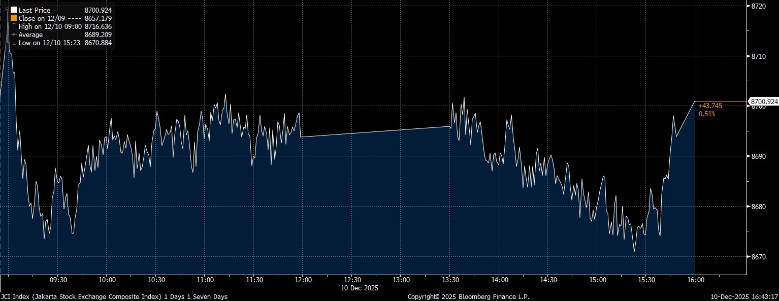 Pada Rabu (10/12/2025), IHSG ditutup di posisi 8.700,92. Naik 0,51% dibanding dengan hari sebelumnya.